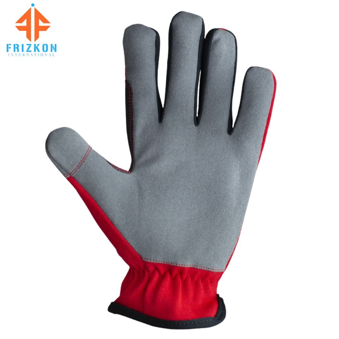 The red Spandex back provides breathability and freedom of movement, while synthetic leather fingertips add extra durability and protection where it’s needed most. For convenience, the gloves are finished with a double-stitched elastic wrist, allowing quick on/off wear while maintaining a secure, comfortable fit.